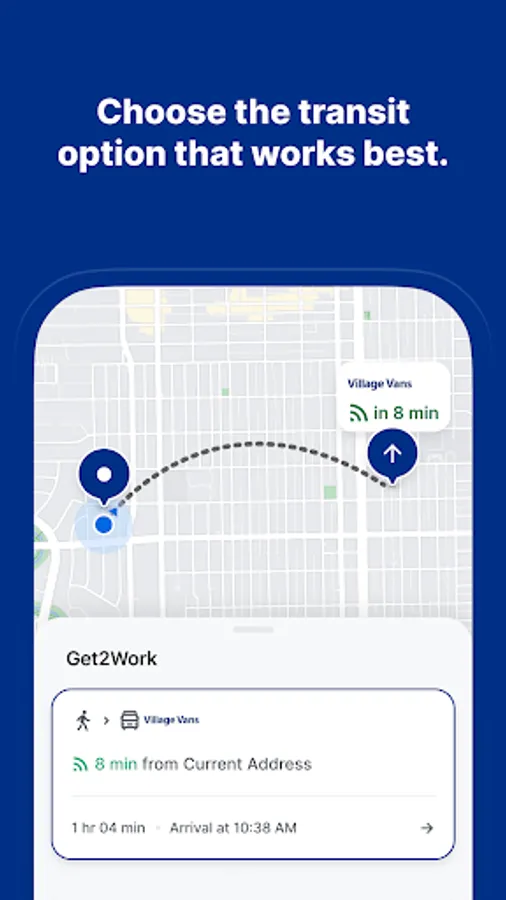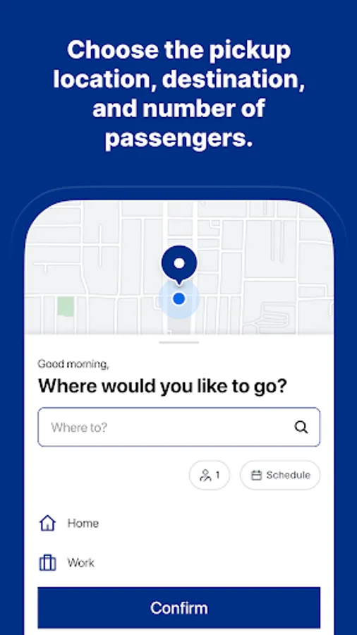Start by downloading the GET2WORK app, then logging in to your GET2WORK account. Confirm your location and input your destination. Then, book your ride.