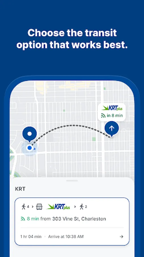 Book an on-demand ride in the app; our technology will pair you with others headed your way. Take a comfortable, affordable ride anywhere in your KRTplus zone or to a place where you can connect with KRT’s regular bus service.