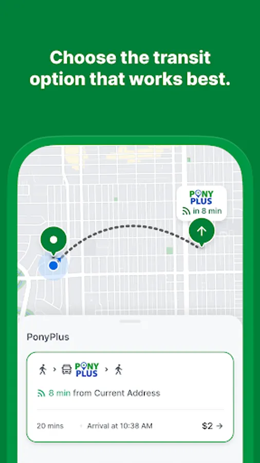 Using PonyPlus is easy. Choose your destination, book a ride, and pay directly in the app. Exact cash fare can also be paid to the driver.