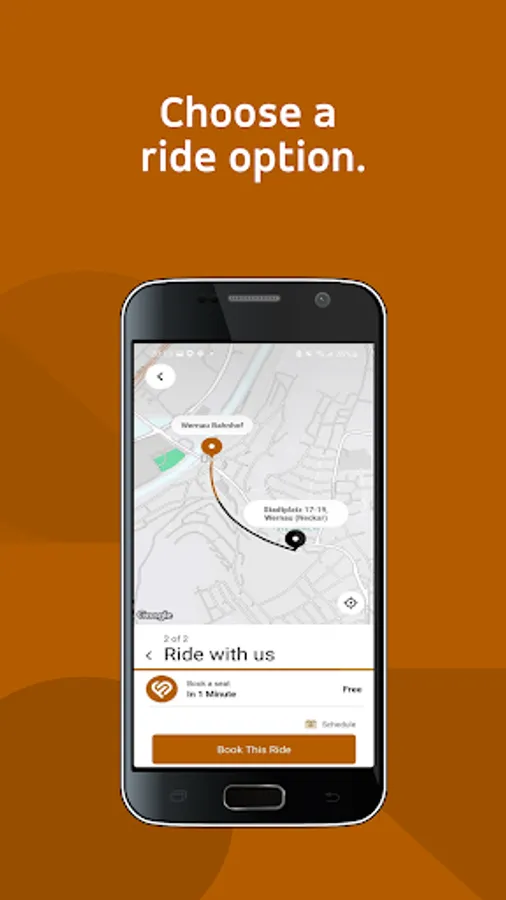 2) Book a ride: Choose your starting point and destination. Your location will be determined automatically, but you can also set addresses manually. You can also enter the number of passengers. You can book rides for several people - even barrier-free. Then select your favorite from the ride suggestions. The app shows you the way to your boarding point, which you can easily reach on foot.