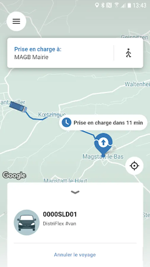 Le service est effectué par un petit véhicule au départ d’un point d’arrêt Distribus.