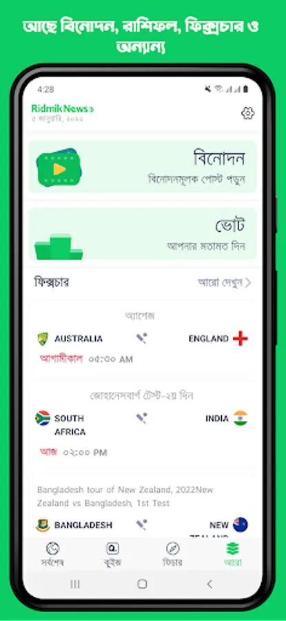 Ridmik News is the first bite sized online news publisher app in Bangladesh. All the news on this app is free and it allows you to scroll infinitely with bottomless recent online news about Bangladesh, sports, politics, education, entertainment etc. It is regularly being updated and improved for a flawless user experience.
