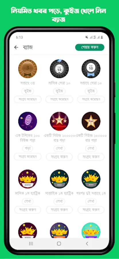 নিয়মিত খবর পড়ে বা কুইজ খেলে ব্যাজ নেয়া