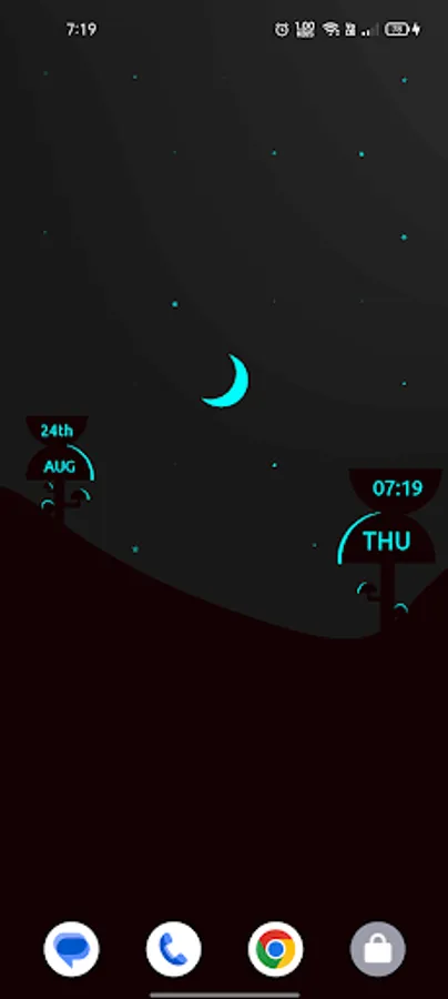 - Wallpaper and colors change based on Sunrise and Sunset.