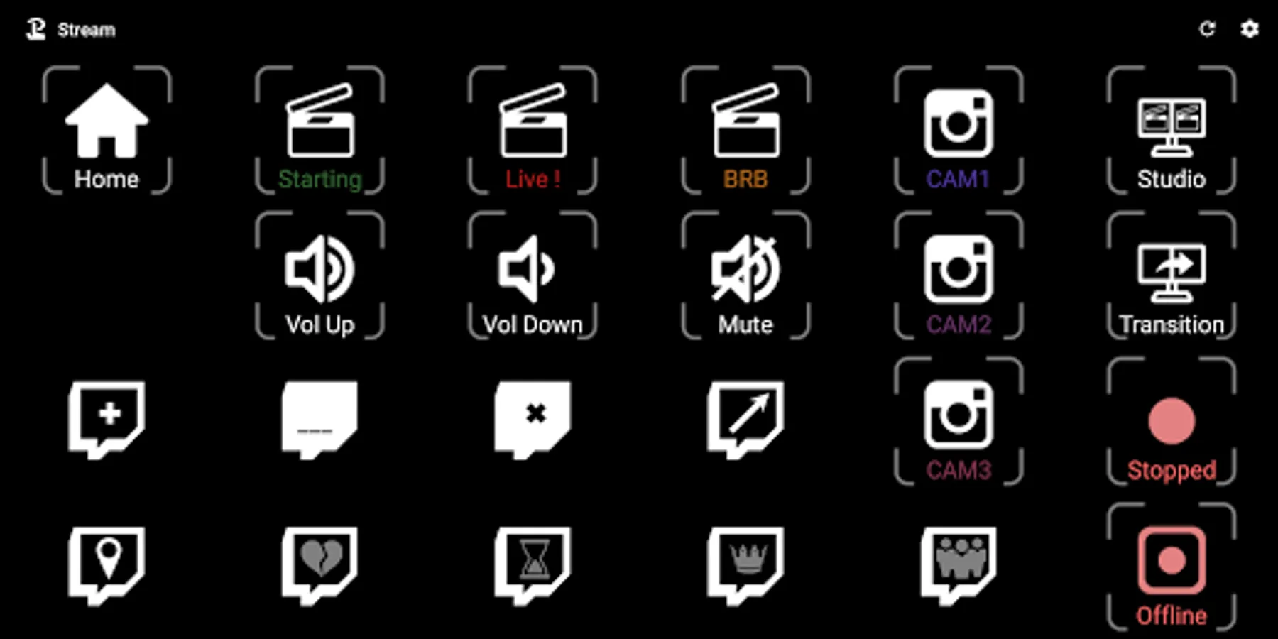 Touch Portal is a remote-control app that allows you to control your streams, games, home automation and your Windows / MacOS / Linux applications using a fully customizable page / deck of buttons and sliders.