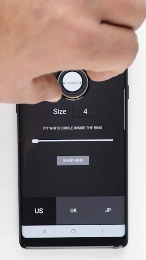 We know that ordering a ring online is not easy. Our app helps you know your exact ring size easily in only 3 steps. Use one of the most common ring size standards used worldwide. USA, UK and Japan standards.