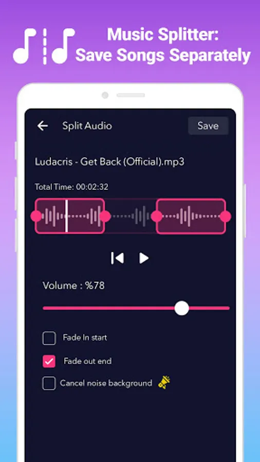 AudioApp Audio Editor: MP3 Cutter & Ringtone Maker has a very useful audio trimmer where you can split a song into two parts. Song cut app enables you to split the best parts of sound and make a song and awesome ringtones. Voice Changer effects work perfectly with ringone cutter and video to audio trimmer. Try the audio reverser by magnificent ringtone maker to convert song and listen backward. Audio App Voice Changer: MP3 Cutter & Ringtone Maker helps you to reverse song with the audio reverser to have the best ringtone or an alarm ever. You can cut music instantly with song cutting app or use MP3 mixer to make ringtone using more than one song!