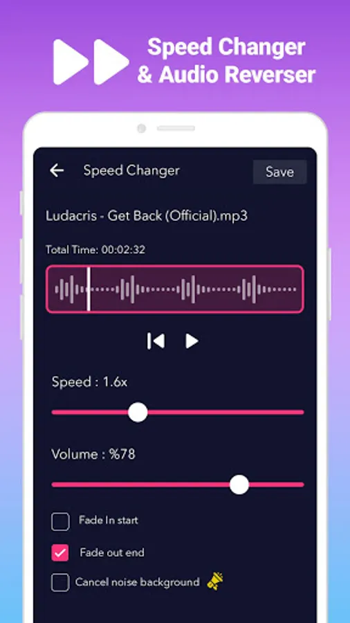 Audio app Music Editor: MP3 Cutter & Merger & Ringtone Maker proudly presents audio mixer that helps you to mix songs to create cool remixes! Create mashups and cut out unwanted parts with stunning audio cutter app and sound maker. Merge music with music mixer, cut sounds with video to audio trimmer and mix songs to create unique artworks. Adjust speed of your breathtaking music to personalize your ringtone or alarm tone with music cutting app. Try all surprising speed options of AudioApp Audio Editor: MP3 Cutter & Ringtone Maker. This brilliant Voice Changer & Song Editor is an all-in-one mp3 cutter app and joiner; offers a legendary tone creator to edit audio.