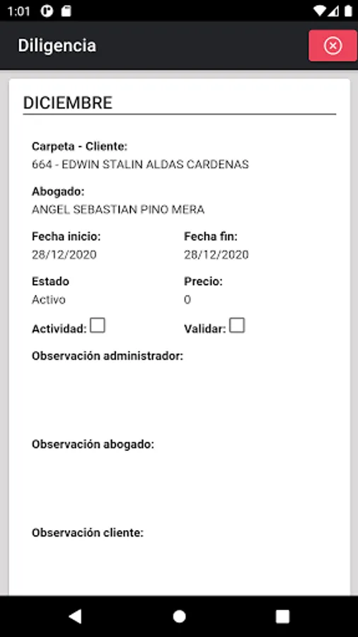 The app allows you to have a control of the lawyers' cases to carry out the procedures that they are in charge of carrying out and clients can see the progress or process of their cases. They can view information and download images and PDFs.