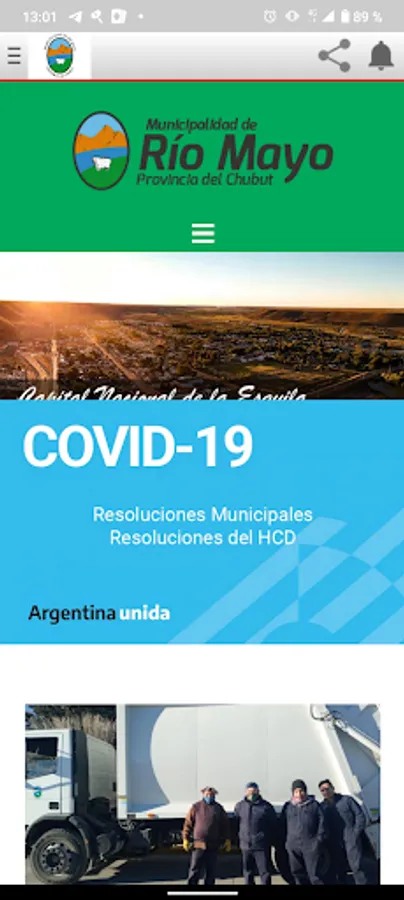 The application shows the events and radio of the city of Río Mayo in the province of Chubut (Patagonia Argentina).