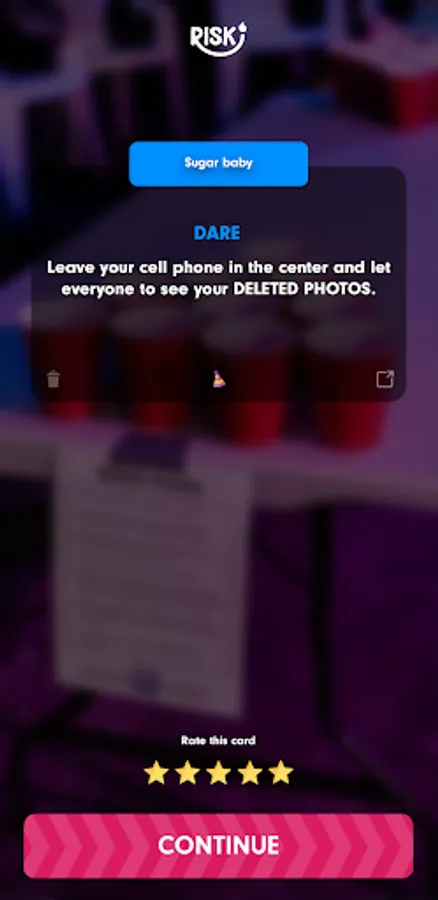 RISKI DARES brings the best classic games like Truth or Dare, Never have I ever and integrates other games like Spin the bottle, Erotic Dices and more that ensure you´ll have the best party, meeting or intimate date (+18).