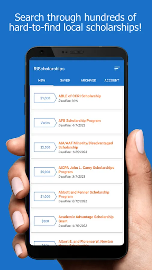 Now you can easily swipe and save hard-to-find Rhode Island scholarship opportunities through the RIScholarship.org app. Local scholarships can help you pay college costs and reduce the amount you need to borrow for school. Scholarships are not only for straight-A students and exceptional athletes. Many scholarships are awarded based on financial need and for other qualities such as interests, ethnicity, or personal characteristics. Scholarship searches can be big research projects, but they are often well worth the effort.