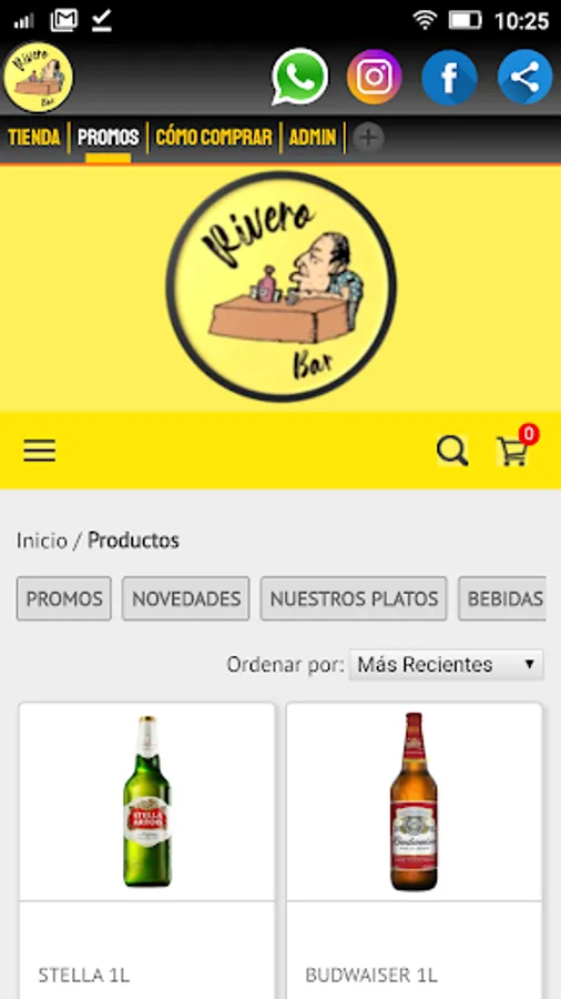 RIVERO BAR offers you a variety of dishes and drinks. Now we bring it to your house. By downloading the app, you can buy in our online store and pay in cash or by card