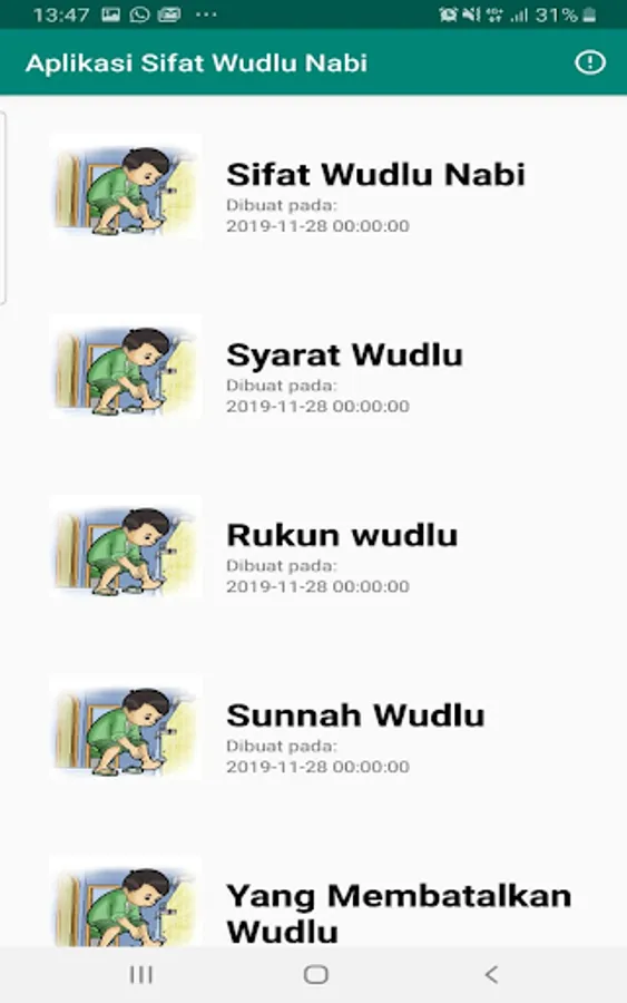 The application of the nature of the ablution of the prophet is an application made by students of Informatics Engineering UIN Maulana Malik Ibrahim Malang which is provided free of charge.