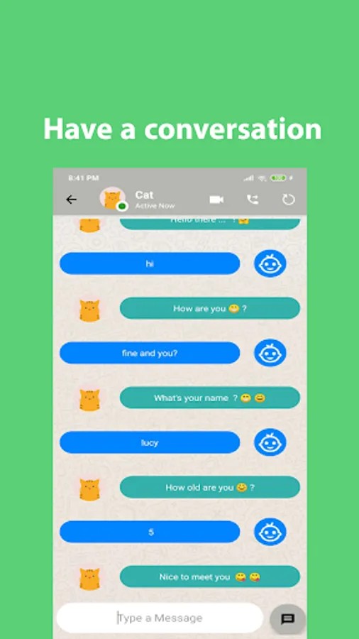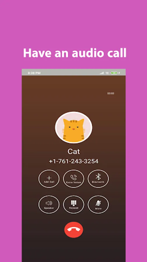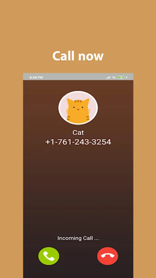 Fake Vedio call and Chat from Cat is a simulation prank app that fakes incoming calls and fake incoming video calls, and simulate fake conversation with Cat , (in case of a life video call). by a simple click you can go in a fake live with Cat , it’s an easy app in order to entertain yourself and prank your friends and family and see their reaction , the calls looks so realistic and they will believe that Cat is really talking to them.