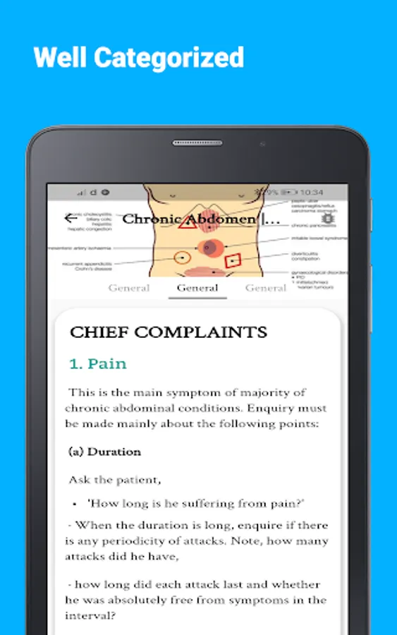 8. bedside tool that removes the hurdle of forgetting common details in surgical cases such as: Pain, Swelling, Ulcer, Sinus/Fistula, Hernia and many other that you can find in the app