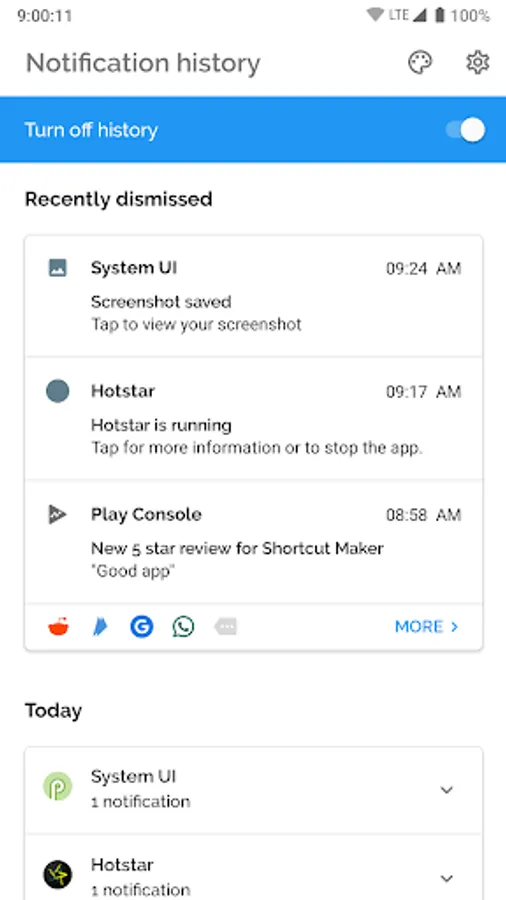 - Saves all dismissed and snoozed notifications.