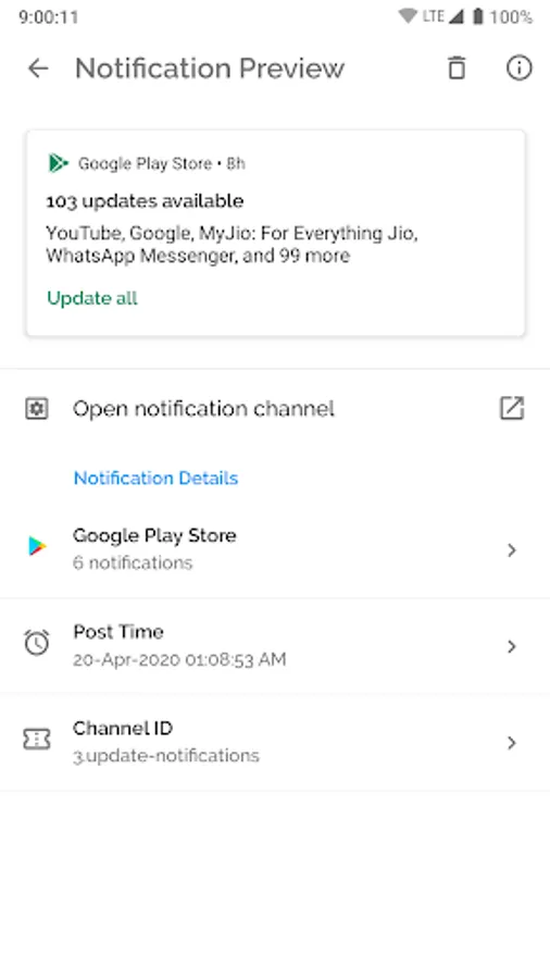 - Detailed notification preview.