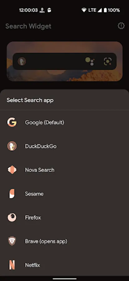 - Search providers: Google, DuckDuckGo, Nova, Sesame, Bing, Firefox, Brave, Netflix
