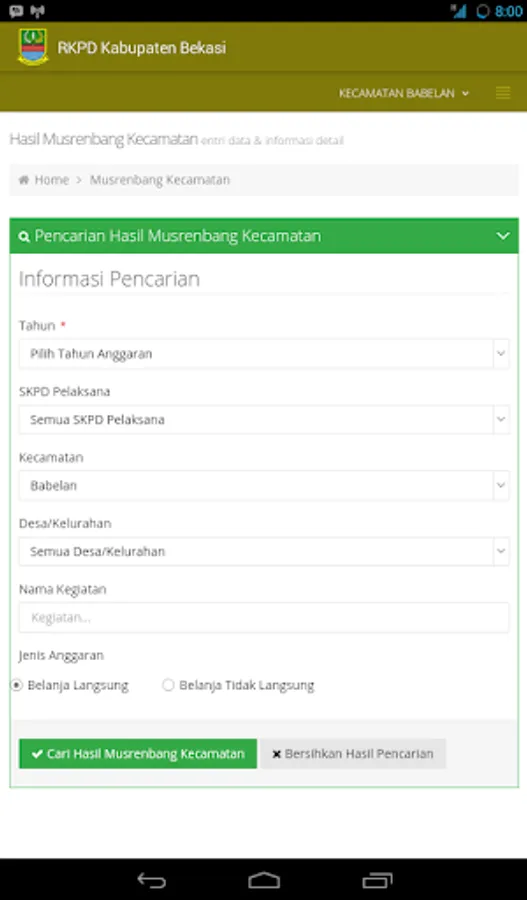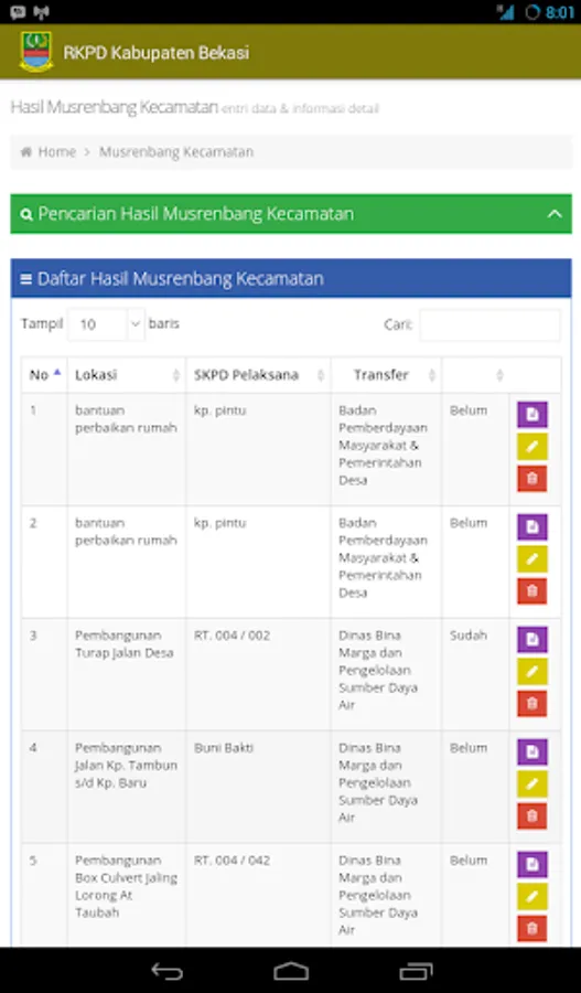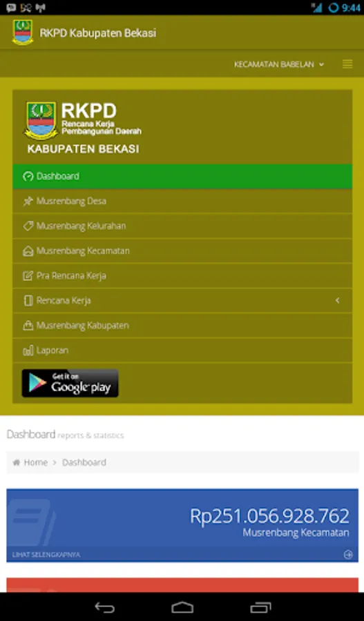 Aplikasi RKPD Online ini dikembangkan untuk meningkatkan kualitas Sistem Perencanaan Tahunan Kabupaten Bekasi, khususnya dalam menyeleksi usulan program dan kegiatan prioritas, serta melakukan entri hasil musrembang, rencana program kegiatan prioritas Desa/Kelurahan, Kecamatan, SKPD dan Bidang BAPPEDA Kabupaten Bekasi.