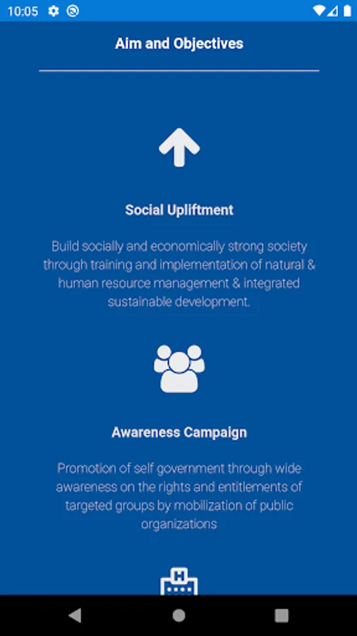 Promotion of self government through wide awareness on the rights and entitlements of targeted groups by mobilization of public organizations and strengthening them through leadership and other necessary trainings and by aspiring and making them stir for attainment of their rights over self governance.