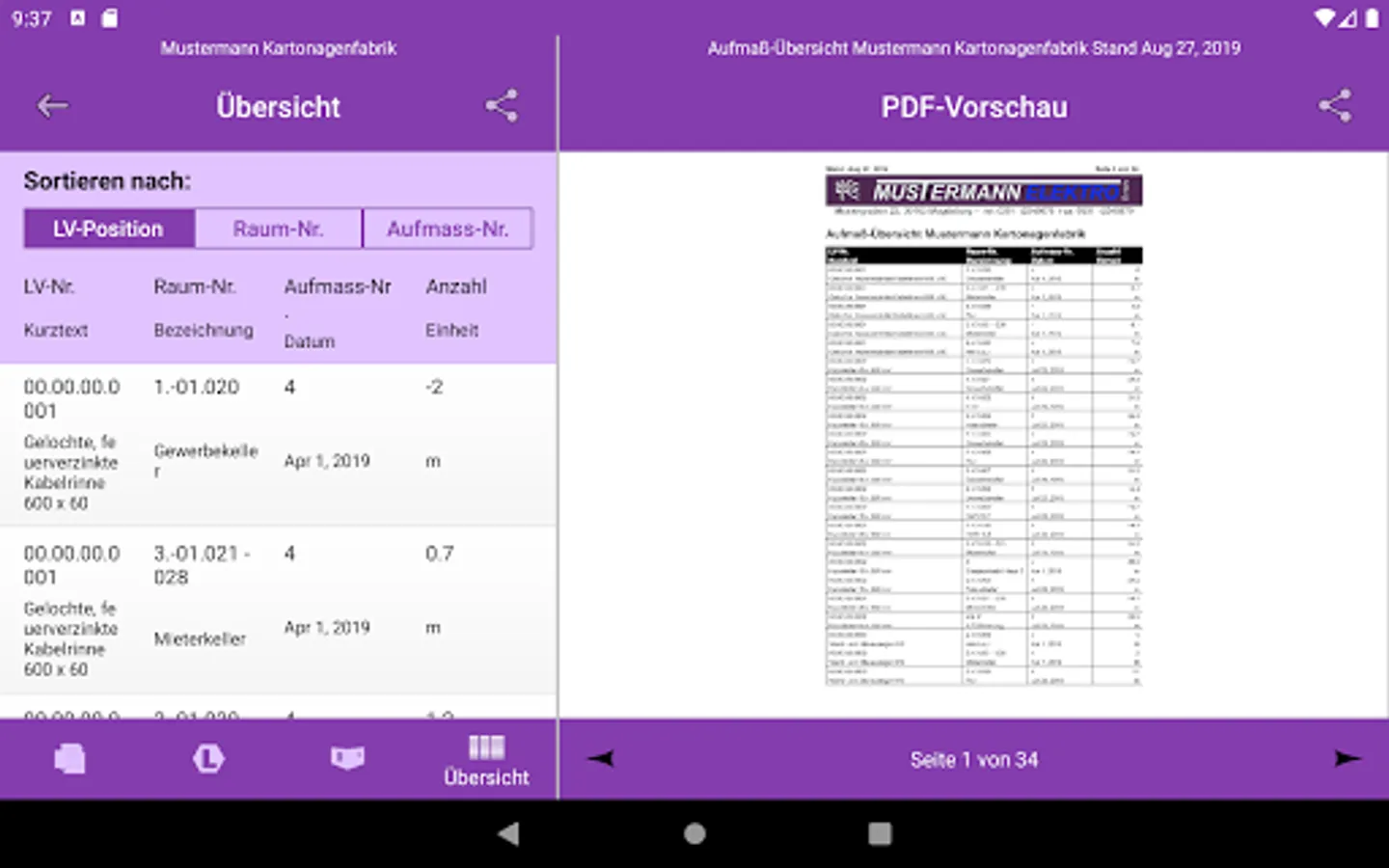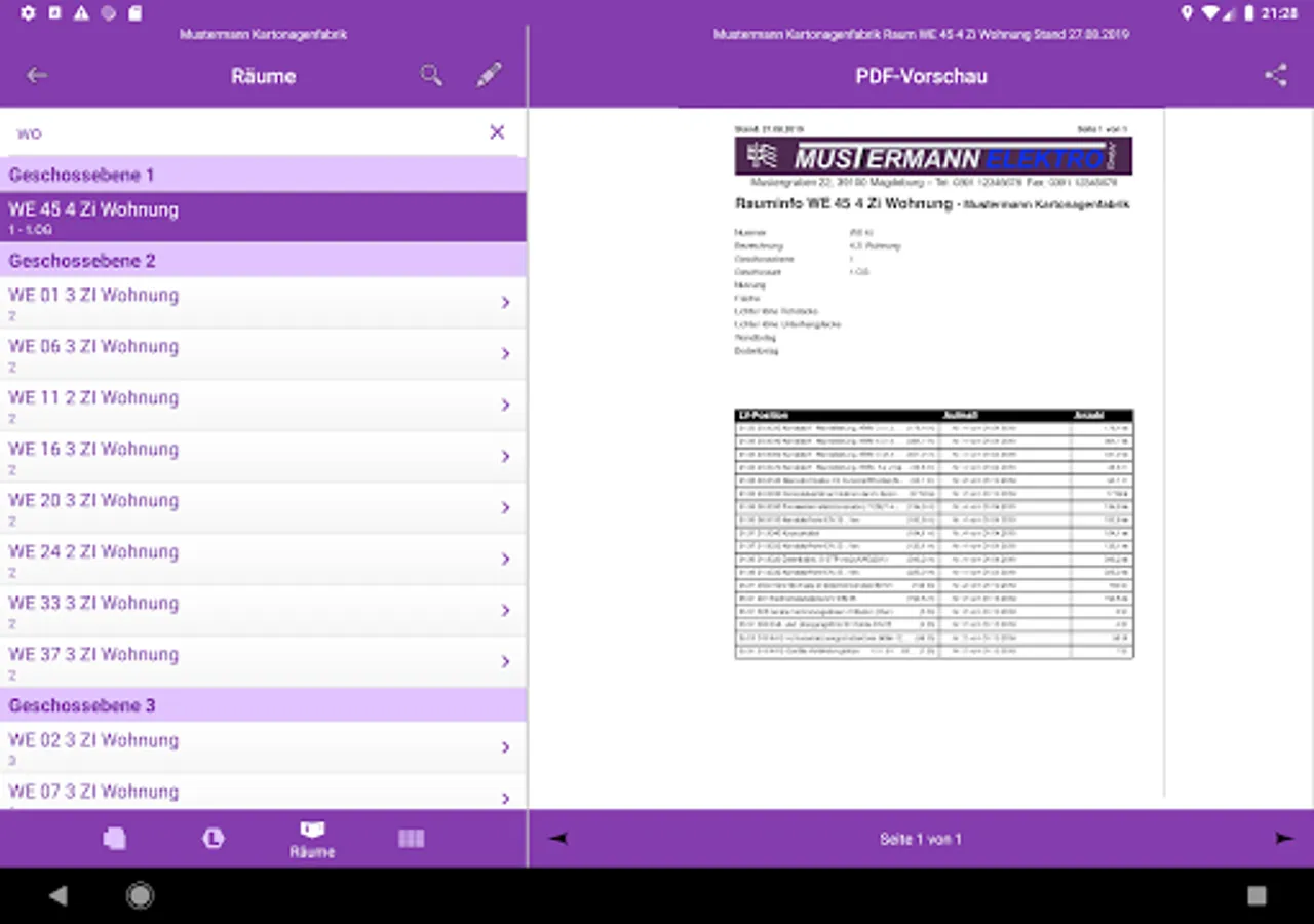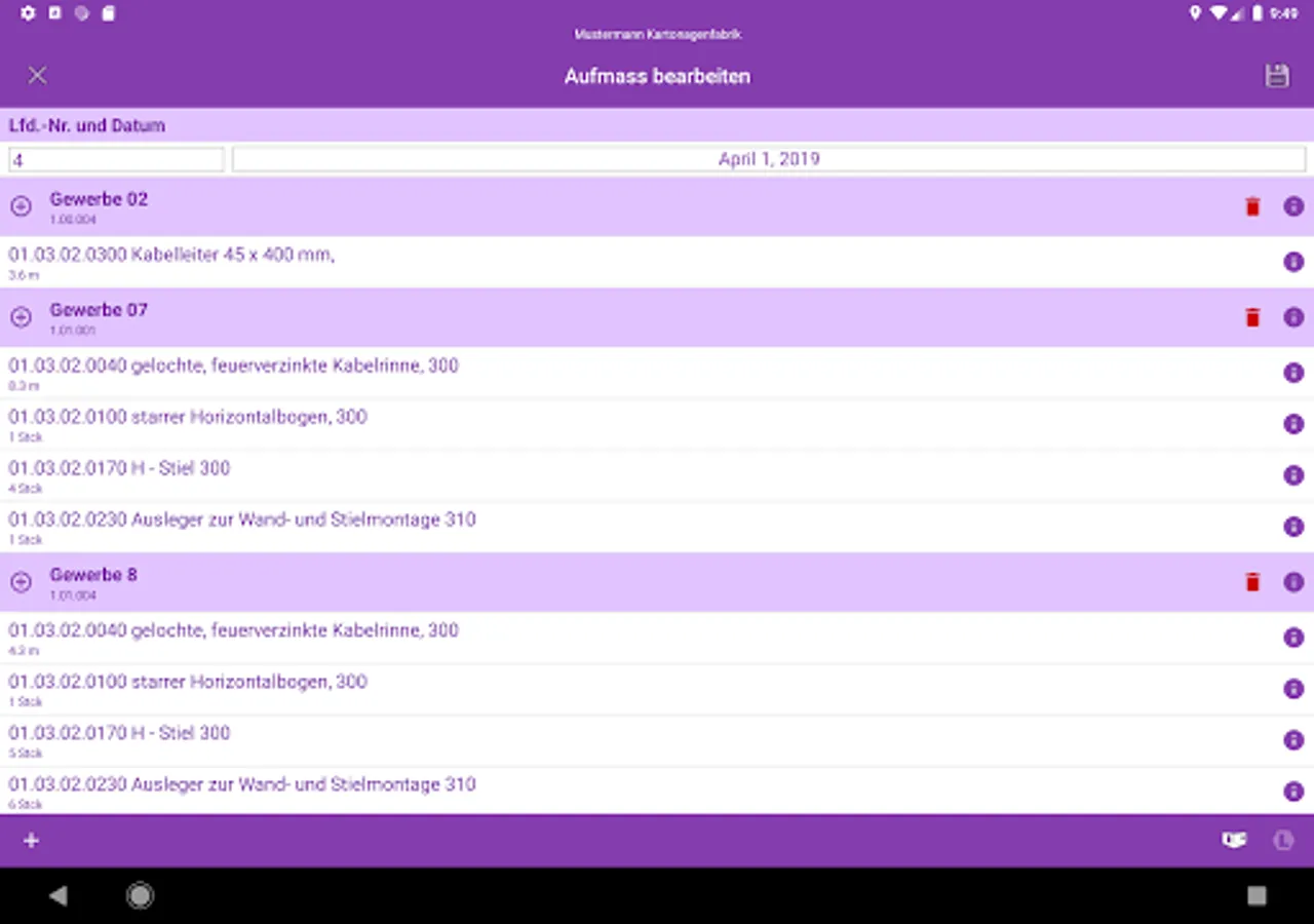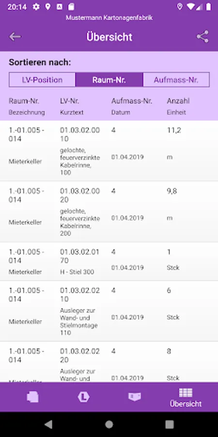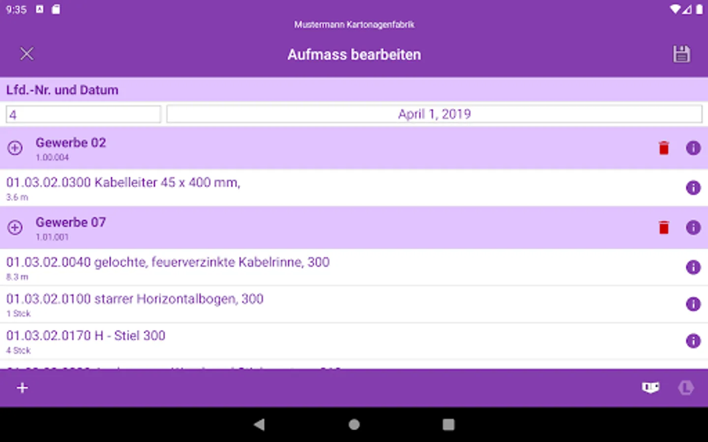 Using the export function, you can export quantities as * .XML and import them on another device with the allowance app. All service positions and rooms as well as the company and construction site will be taken over. The data in the XML file is encrypted and can only be read out via the app.