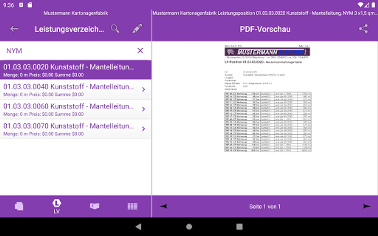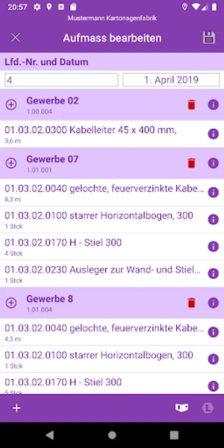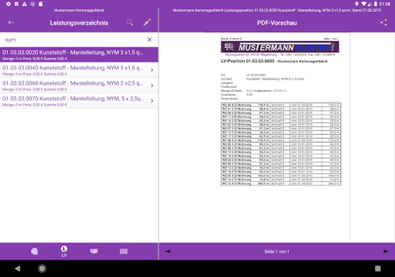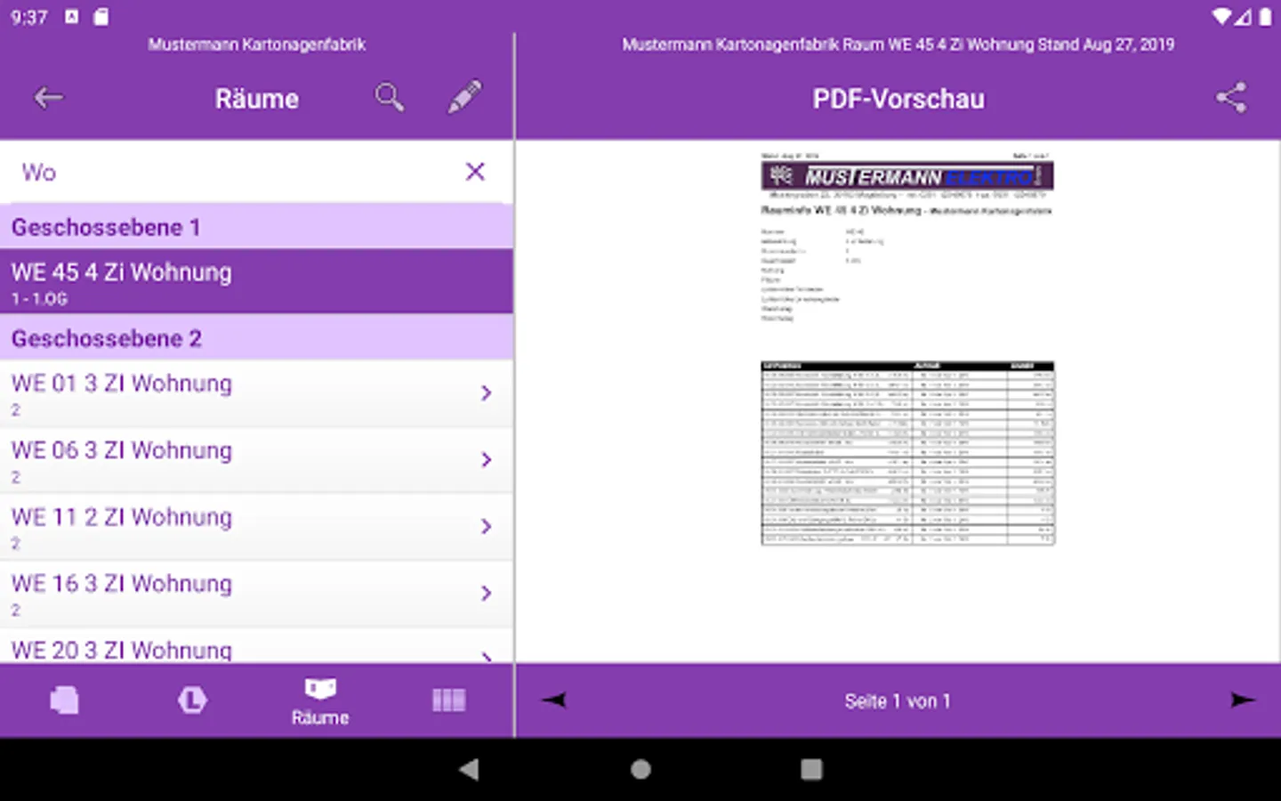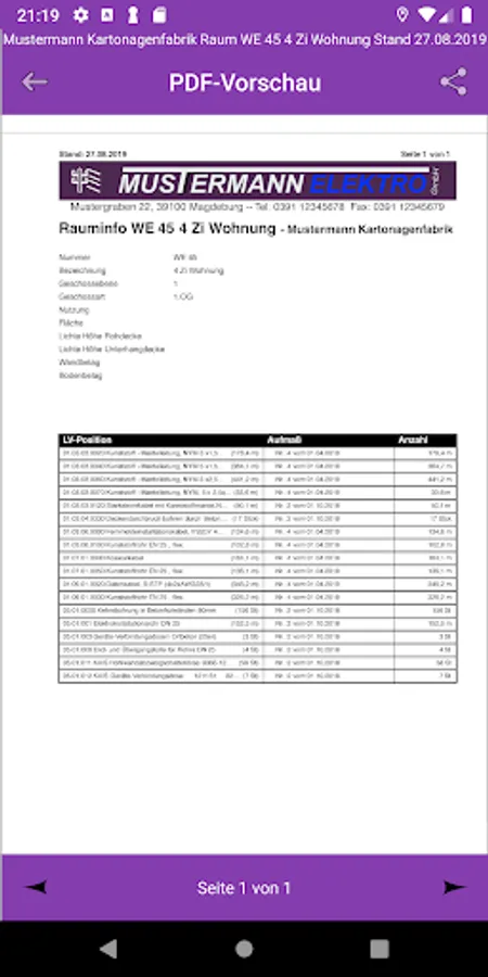 Using the export function, you can export quantities as * .XML and import them on another device with the allowance app. All service positions and rooms as well as the company and construction site will be taken over. The data in the XML file is encrypted and can only be read out via the app.