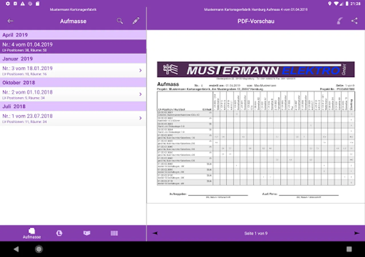 With 'Aufmass' you can create construction measurements that are stored in a database and can be distributed as a PDF file.