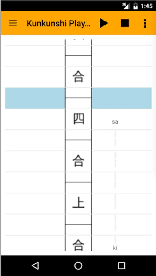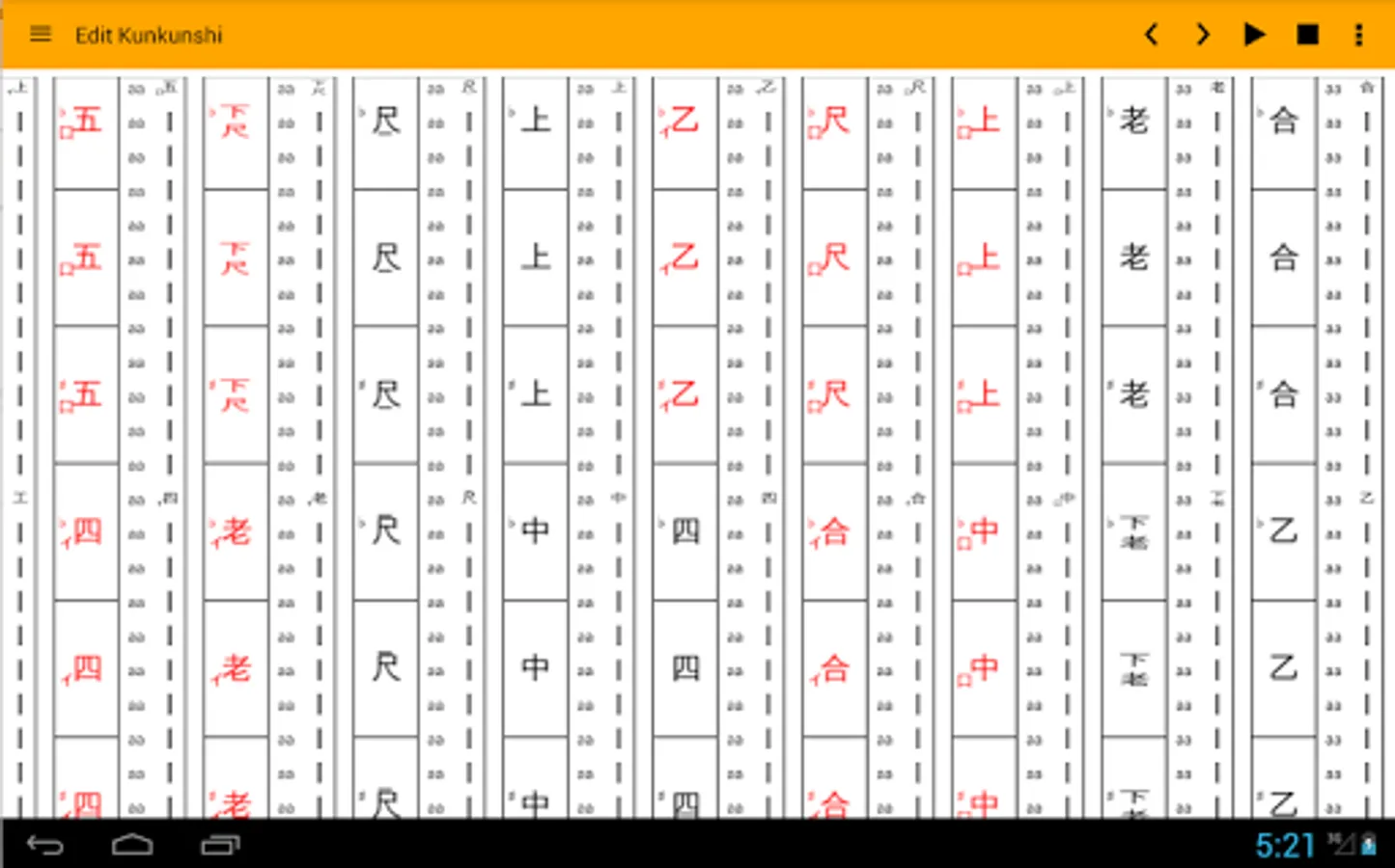 - It can mark in red the notes that require moving your hand along the neck of the sanshin, such as "八", "九" and so on.