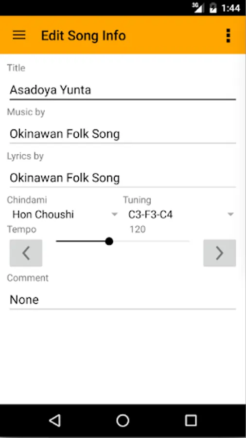 - Includes fields for the names of the lyrics author and music composer, as well as particular notes about the kunkunshi.
