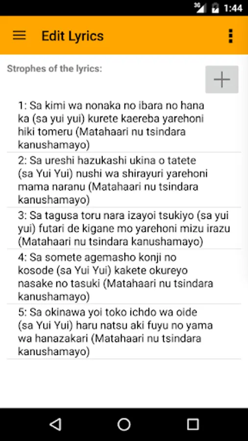 - Separates the lyrics into different strophes. You can add, insert, remove or even exchange the positions of the strophes.