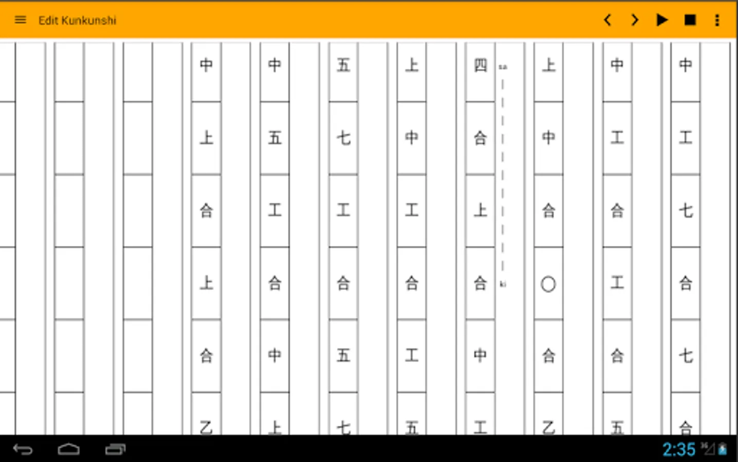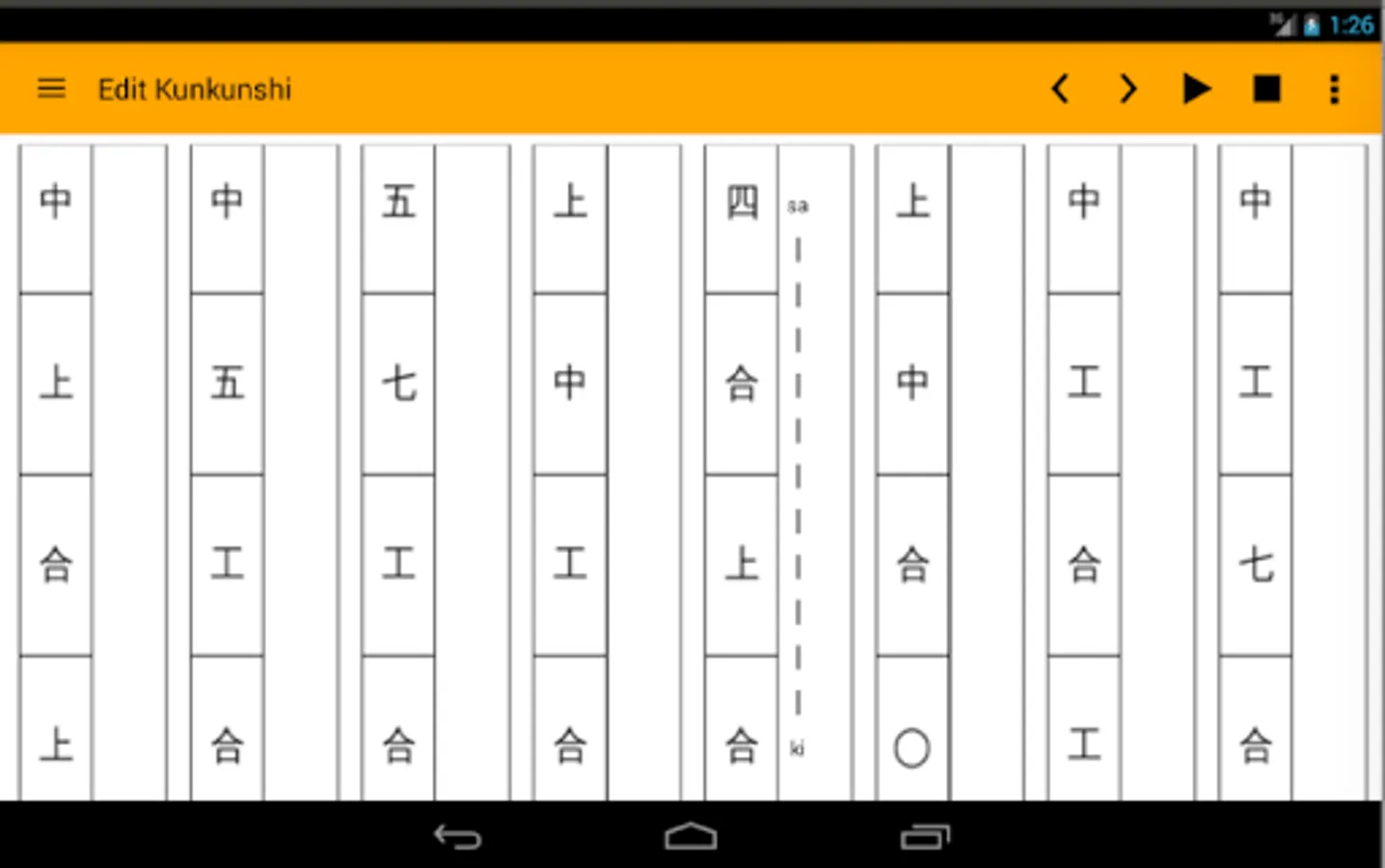 - A special user interface lets you practice your kunkunshi: you see the notes coming and you have to play them at the right time!