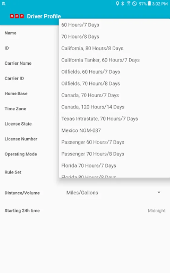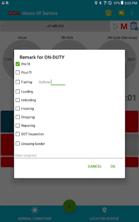Compliant app to record driver duty status and meet the following regulations: