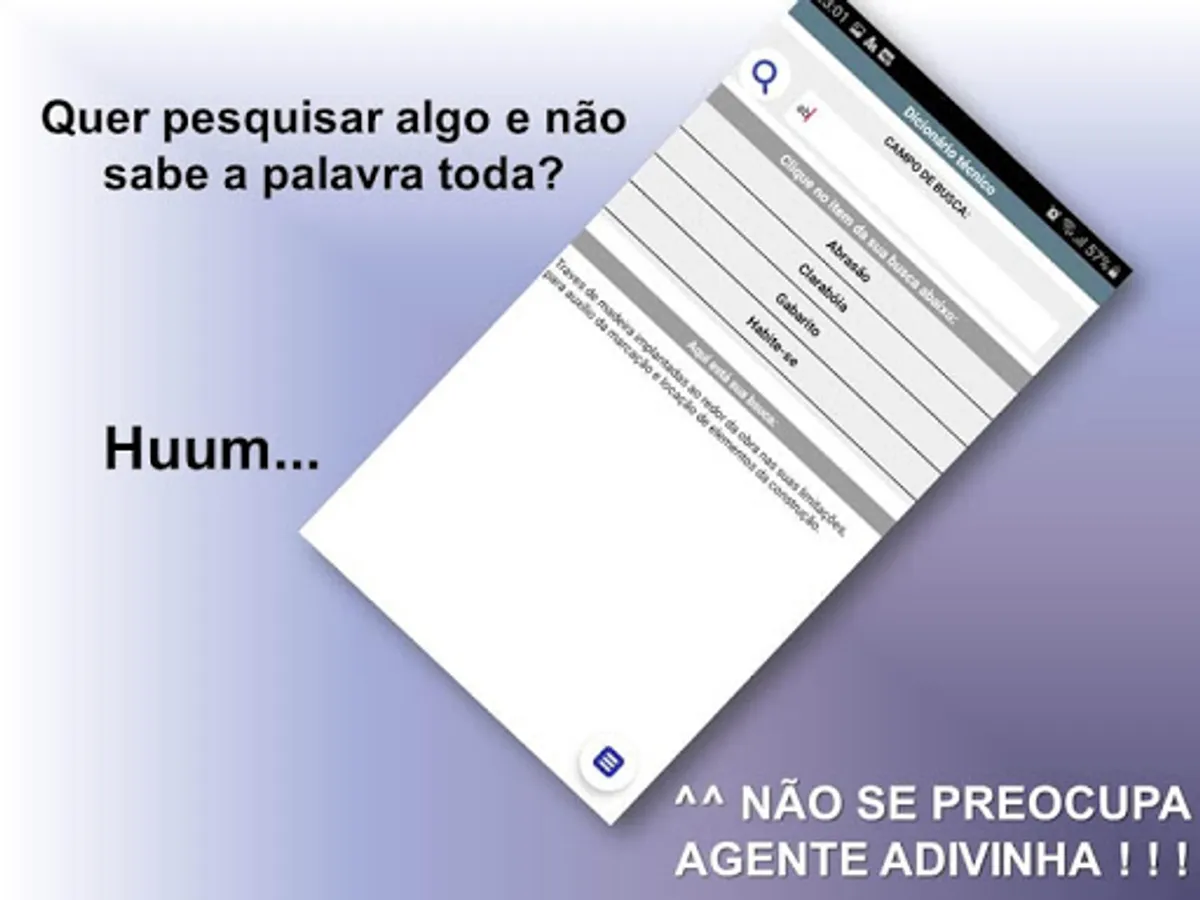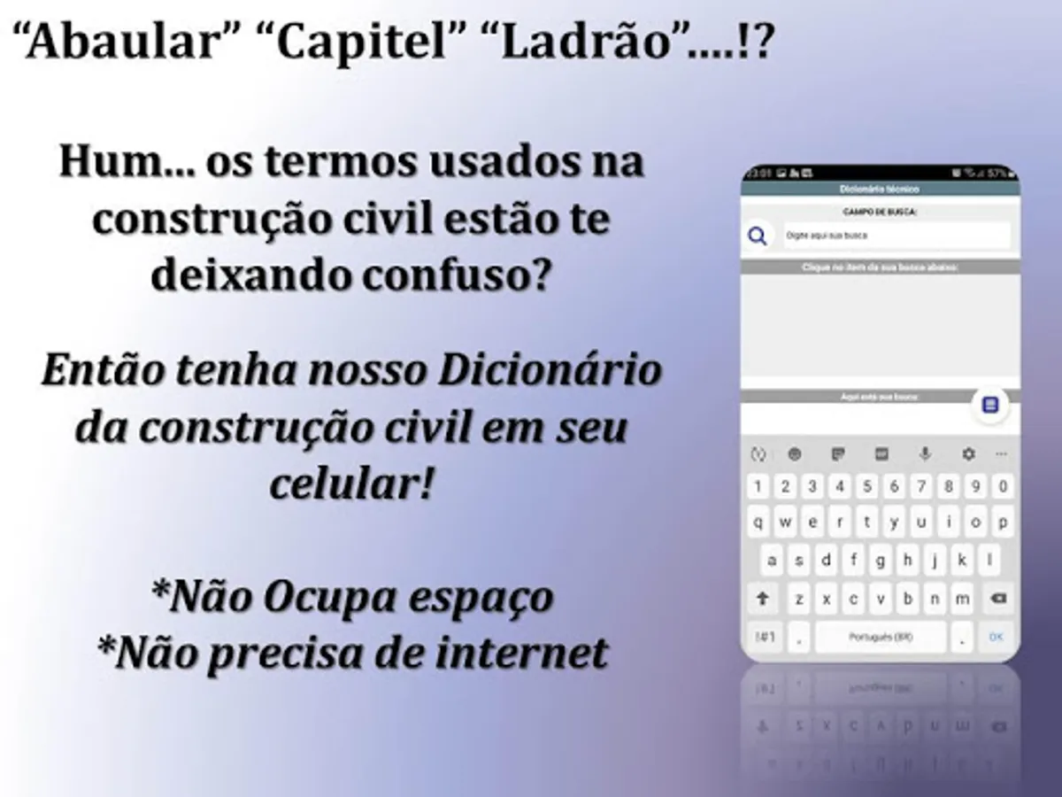 Our civil construction dictionary app was developed by specialist Civil Engineers, thinking of making your day-to-day work easier, or even studying related areas.