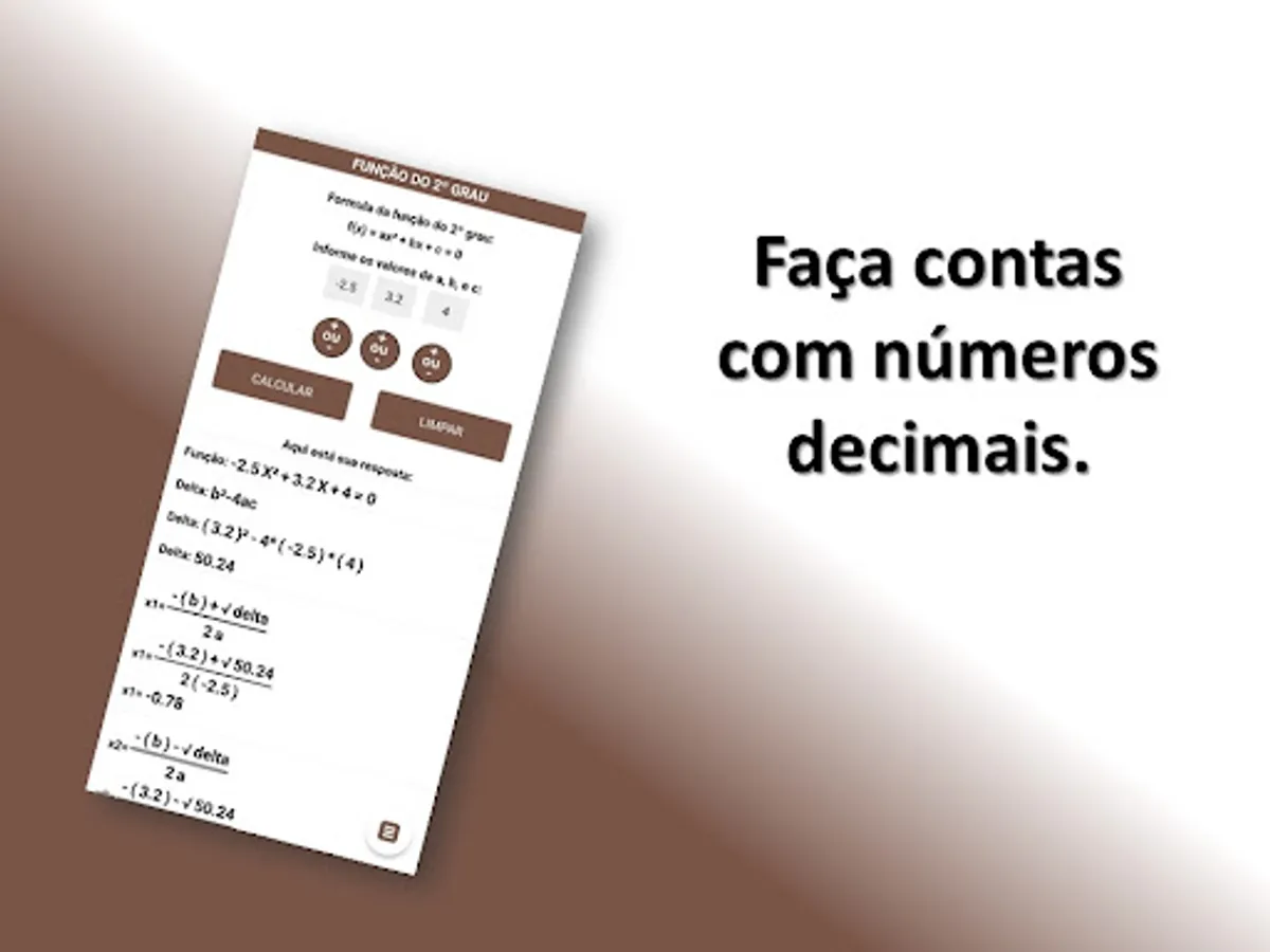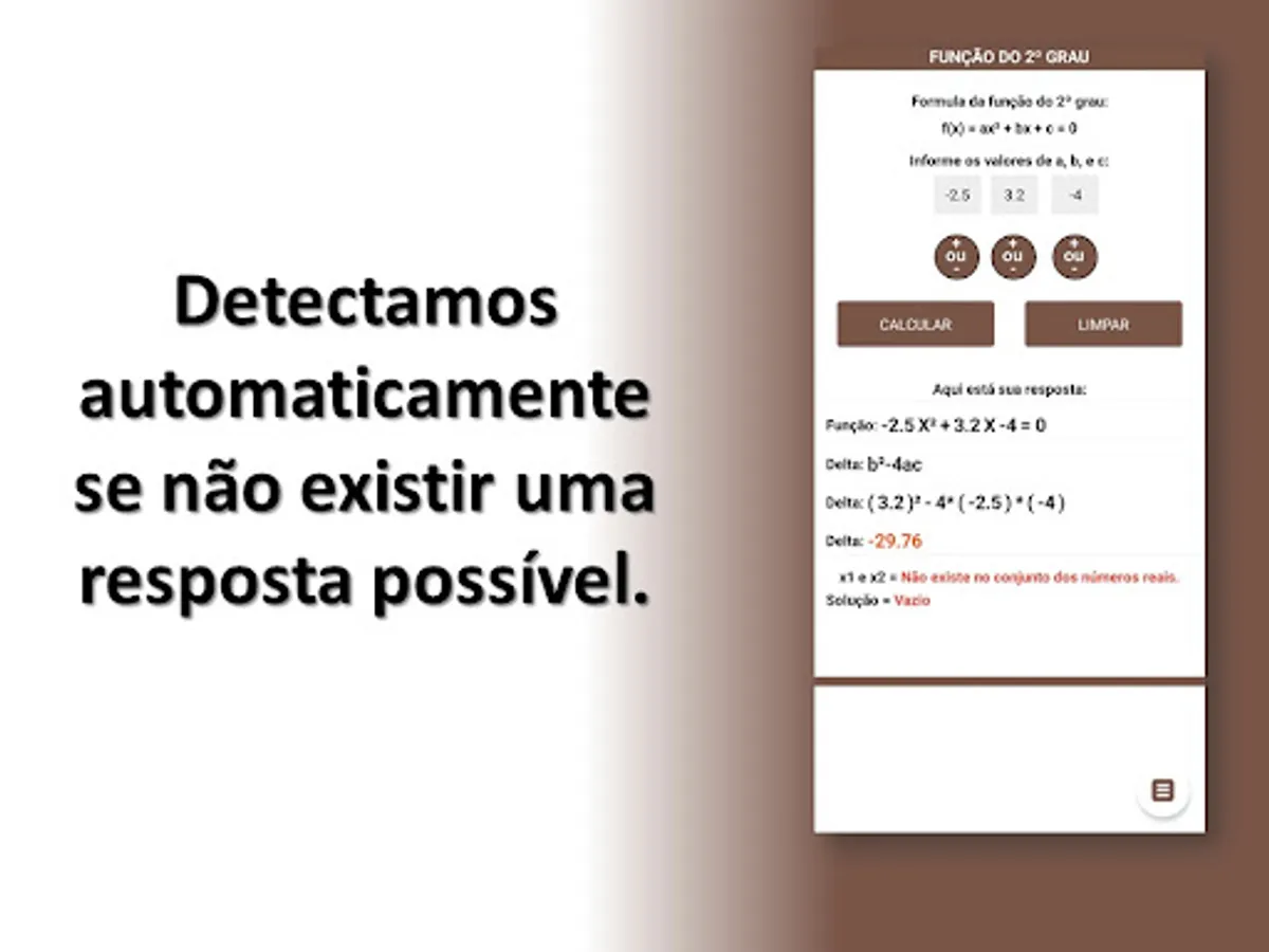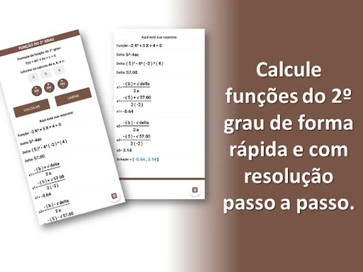 Our second degree function application was developed thinking about facilitating the study of mathematics, in particular the second degree function, so our application gives you in detail all the step by step until you reach the final answer, so it is easy to practice and correct exercise, discovering where he went wrong and learning more and more.