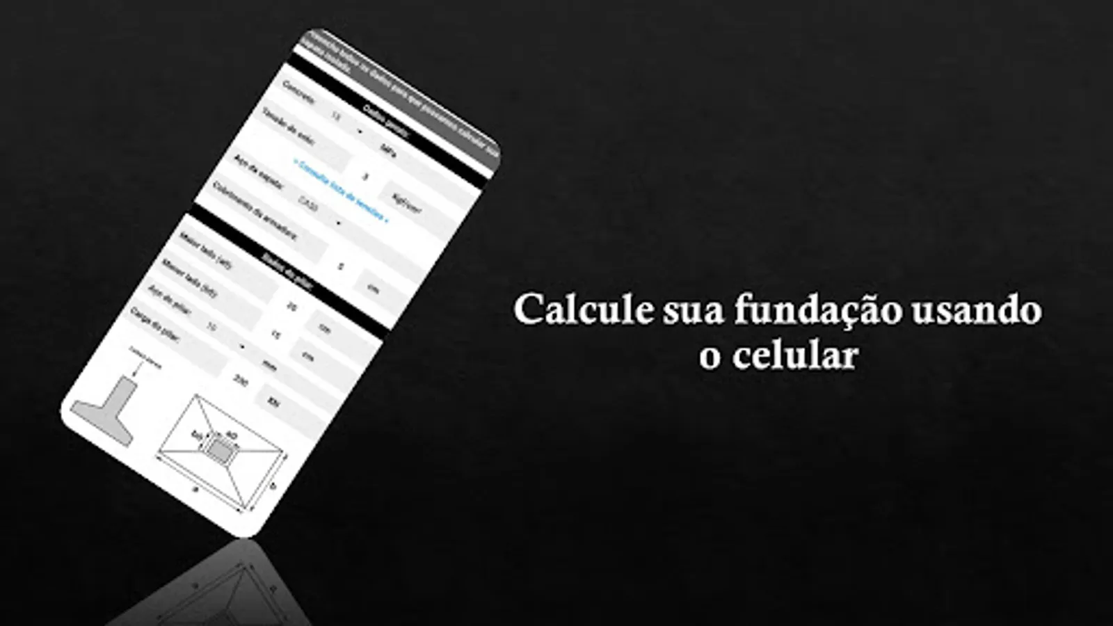 In the application you only enter some data, such as the load on the column, the dimension of the column and some data about how you want your foundation, and the application will quickly provide you with all the data for you to design and run your foundation.