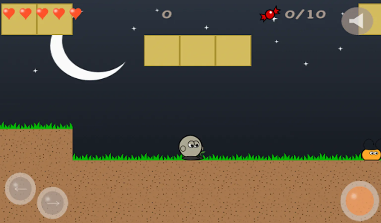 Candyworld is a 2D platformer. Run and jump over platforms and defeat enemies. Find the golden candy at the end of each level to move on to the next one. There are also 10 red candies hidden in each level. Collecting them unlocks bonus minigames. The game background changes depending on the time of the day (day, evening, night) you play the game.