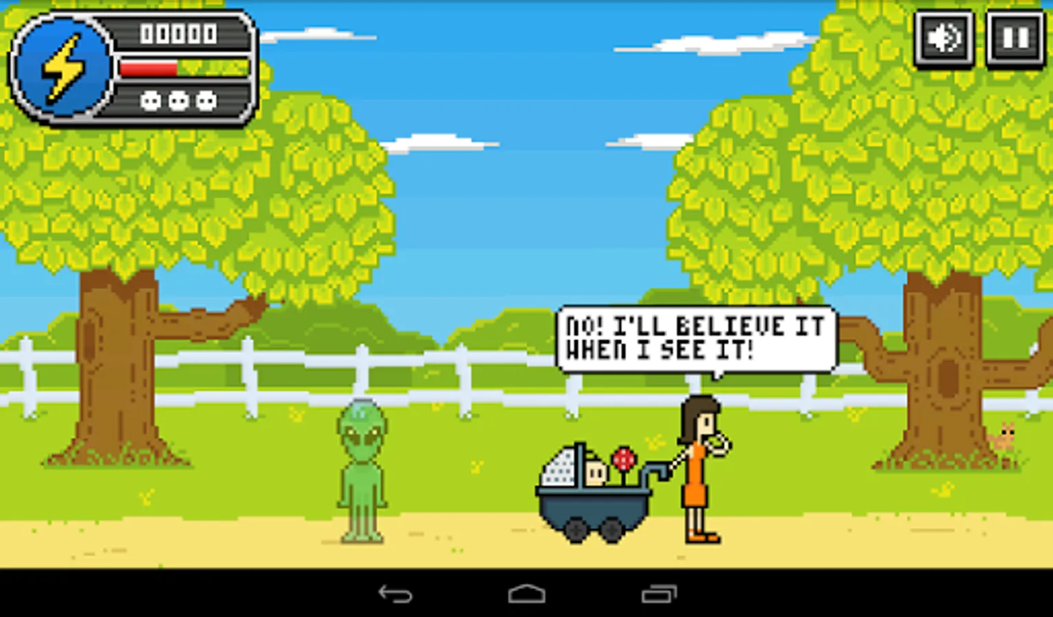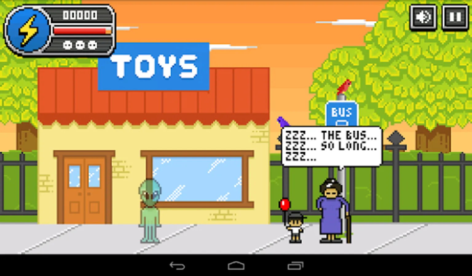 The simple one button gameplay ensures that anyone can easily learn to play the game. The cute and colorful retro pixelart graphics add to the fun and light hearted atmosphere. Score as many points as you can and use them to purchase disguises and upgrades for Zie, through the in game shop. Compete with your friends and players from all over the world through leaderboards and achievements implemented using Google Play Games.