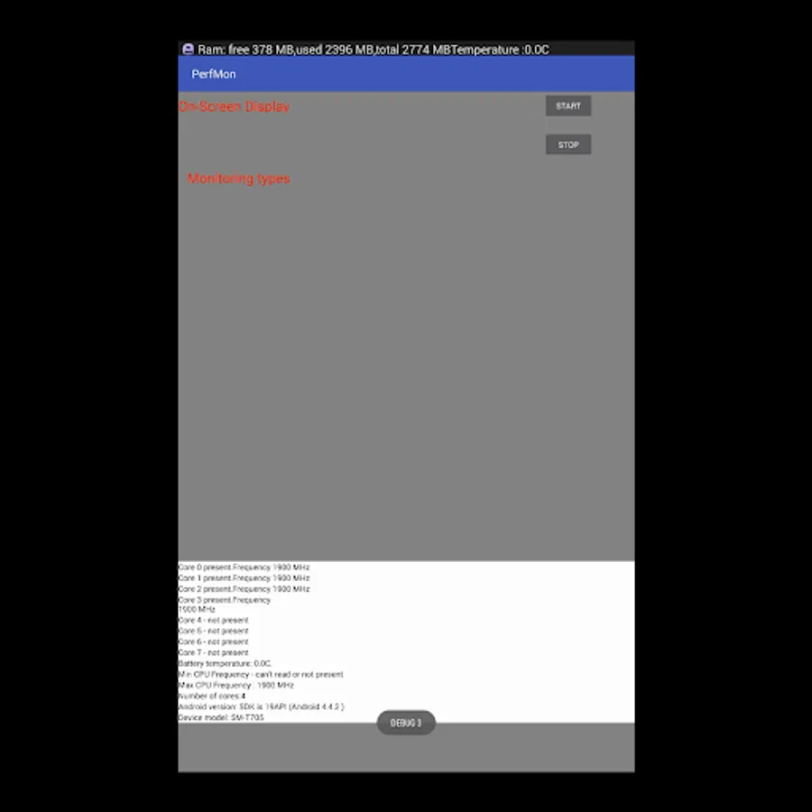 Do you need a simple, easy, non-background process monitoring performance for your device? Then this application is for you. That's what it can do: