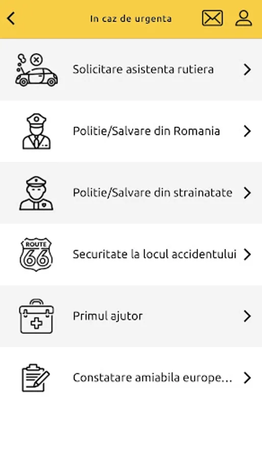 -Application offers a number of services that help the driver: finding the nearest gas station, finding the parked car, information about the traffic rules on EUROPA, on-board symbols or even alerts about the expiration of the ITP, the plane or the medical kit .