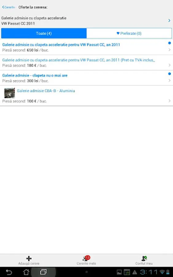 As soon as the price offers and centralizes application PieseAuto.ro you announce to you all in one place so you can find the right track fast and easy without hitting a hundred phones to check stock.