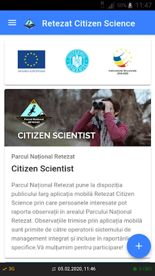 Application for data collection within Citizen Science projects carried out within the Retezat National Park.
