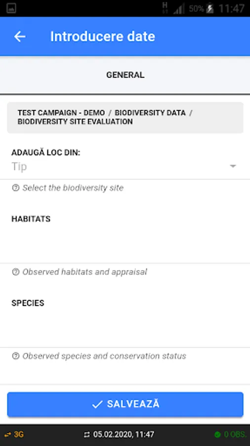 In order to use the application it is necessary to register in the system. After the registration, the users will receive access to the Data collection campaigns related to the citizen science projects carried out at the time.