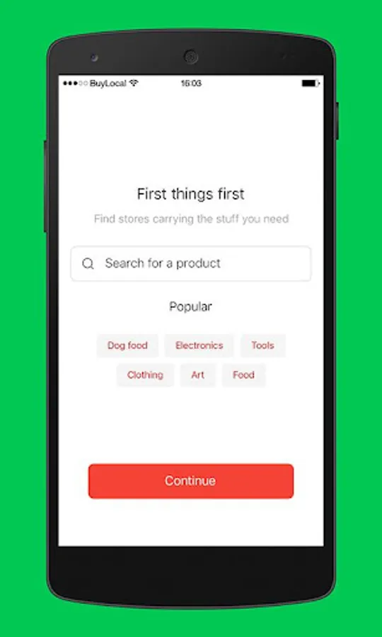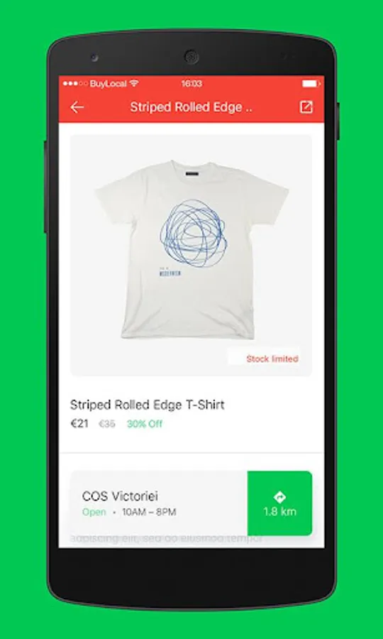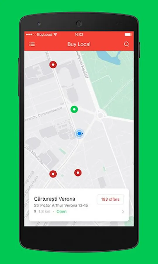 Buy Local is the application where you find offers at the stores around you.