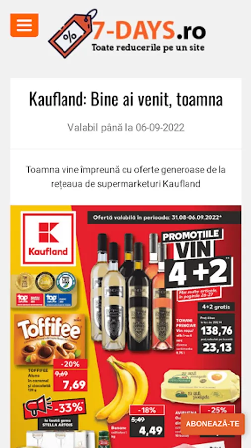 Find discounts, brochures and catalogs for your favorite stores such as Lidl, Auchan, Kaufland and Metro in 7Days.