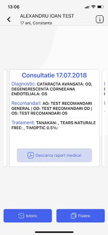 De asemenea, pot cauta un pacient, sa acceseze istoricul de consultatii si interventii, sa descarce raportul medical asociat unui programari sau sa vizualizeze fisierele cu diverse investigatii din sistem.
