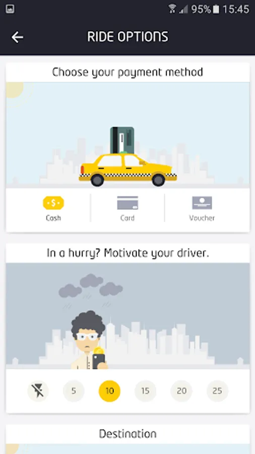 Interface application both easy and how easily you can place an order by just two clicks will help you more easily find a taxi when you need.
