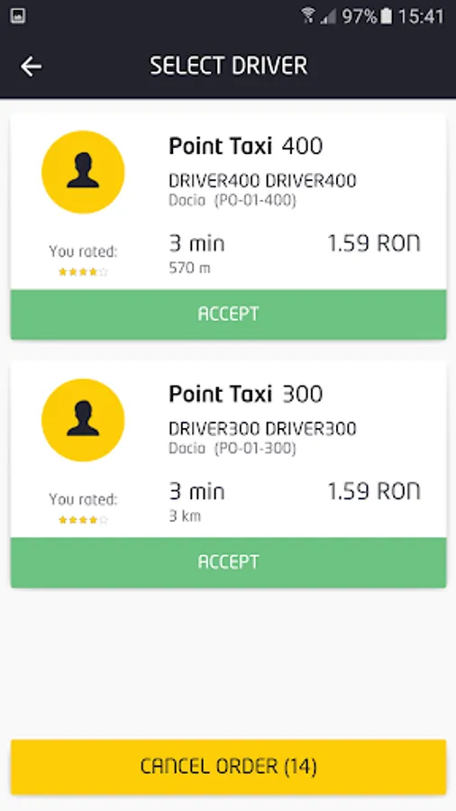 Taxi Point application allows simultaneous ordering a taxi to taxi companies in Bucharest: DARTEX Taxi, Taxi Leone, Taxi AS. Thus, over 2,000 taxi drivers professionals at your disposal 24h / 24.