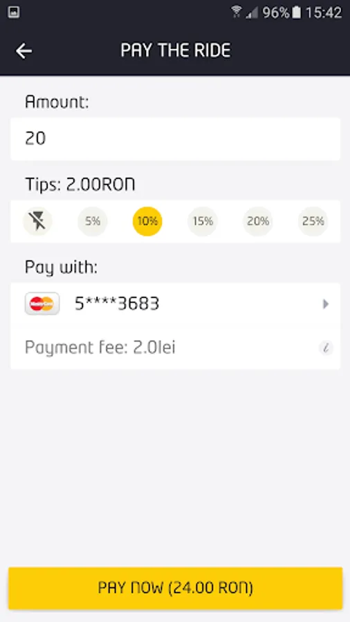 You may add more cards to your account, and at the end of the trip you choose one of them to pay the race. It's that simple!