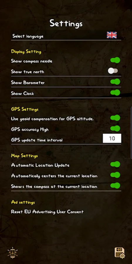 🧭 Features: Easy to use and configure; Shows latitude, longitude, altitude, pressure and current date; Show current location on map; Google Maps with the ability to upload kml files; Custom static image maps that work without an internet connection; Compass can indicate real or magnetic north; Uses EGM96 as the GeoID reference for the actual altitude calculation; 4 languages available for settings (English, French, German, Romanian, Turkish);